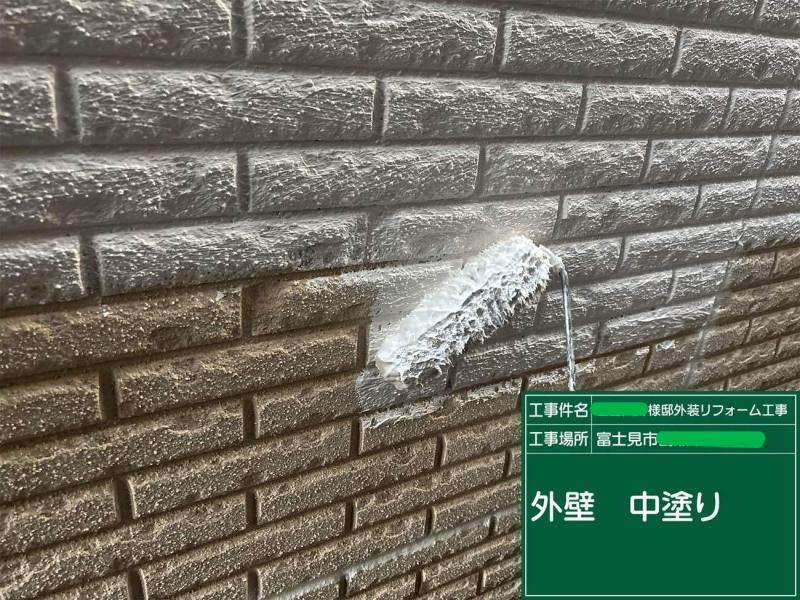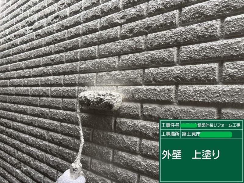 実際の施工中には、外壁に付着していた黒いカビがみるみる落ちていき、下地が本来の明るさを取り戻しました。