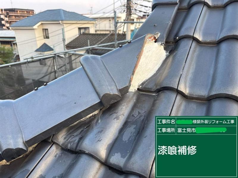 屋根は陶器瓦だったため塗装の必要はありませんでしたが、 外壁工事と同じタイミングで補修を実施 しました。