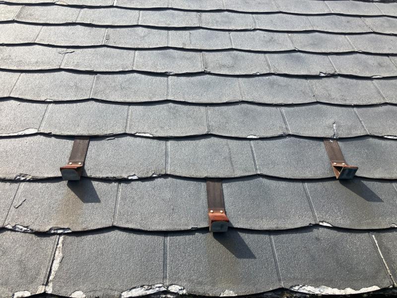 屋根材パミールの典型的な劣化症状として、屋根自体がパリパリと層状に剥がれている状態です。