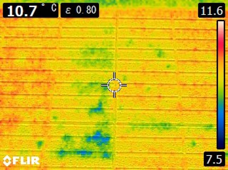 赤外線カメラを使用し、温度差から雨水の浸入を診断します。